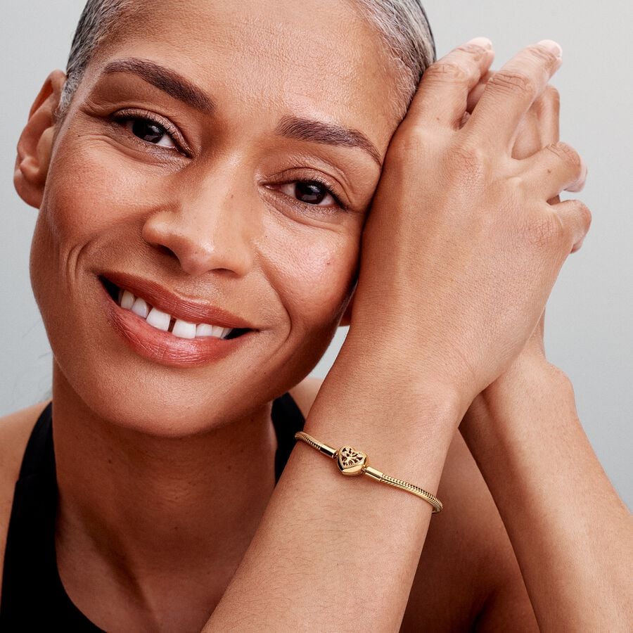Family Tree Heart Clasp Snake Chain Gold Bracelet