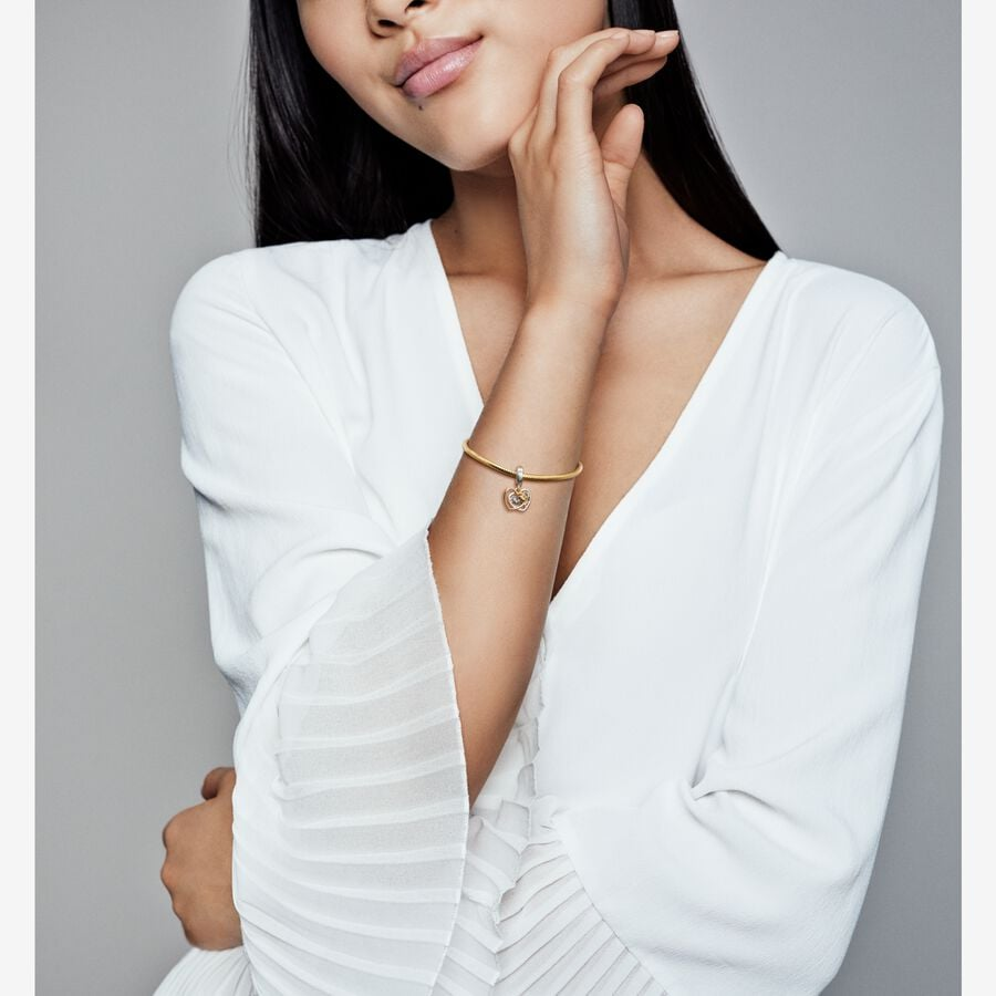 Celebrate togetherness with this heart-shaped bee double dangle charm, engraved with the message “We beelong together.” Crafted with a stunning two-tone finish of sterling silver and an 18k gold-plated unique metal blend, this charm showcases delicate bees on each dangle—one in each metal—symbolizing the hardworking and loving spirit of a beehive united for a greater purpose. The back disc features intricate honeycomb cut-outs, serving as a beautiful reminder that nothing is impossible when you stick together.