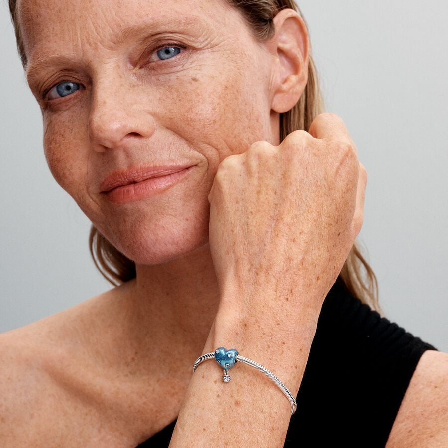 Let your dreams take flight with our Dreams Come True Air Balloon Heart Charm. Crafted from sterling silver with shimmering blue enamel, this enchanting charm features the inspiring message "Dreams come true" and a sparkling pavé-covered basket gracefully hanging from the base. Wear it as a symbol of hope and a reminder that the future belongs to those who dare to dream.