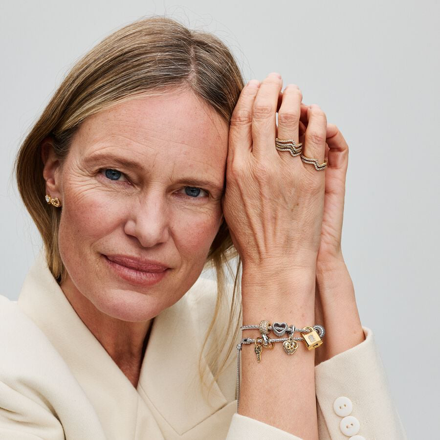 The power of motherly love shines in this elegant Double Dangle Charm. Featuring a 14k gold-plated heart motif on a heart-shaped disc intertwined with a knot-inspired openwork heart, it represents the boundless love for a mother. The other disc, crafted in sterling silver, bears a heartfelt engraving that reads, "Mum you are so precious to me."