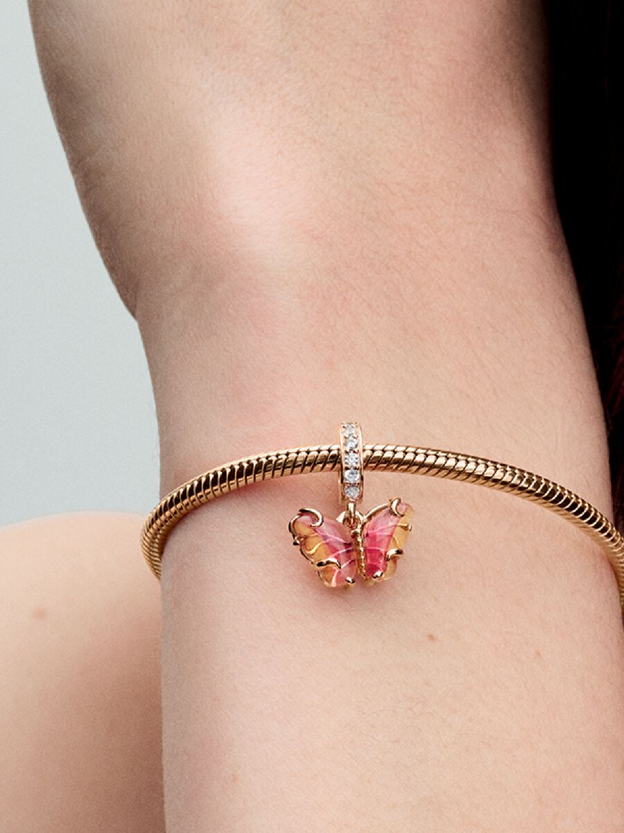 Pink & Yellow Murano Glass Butterfly Dangle Rose Gold Charm