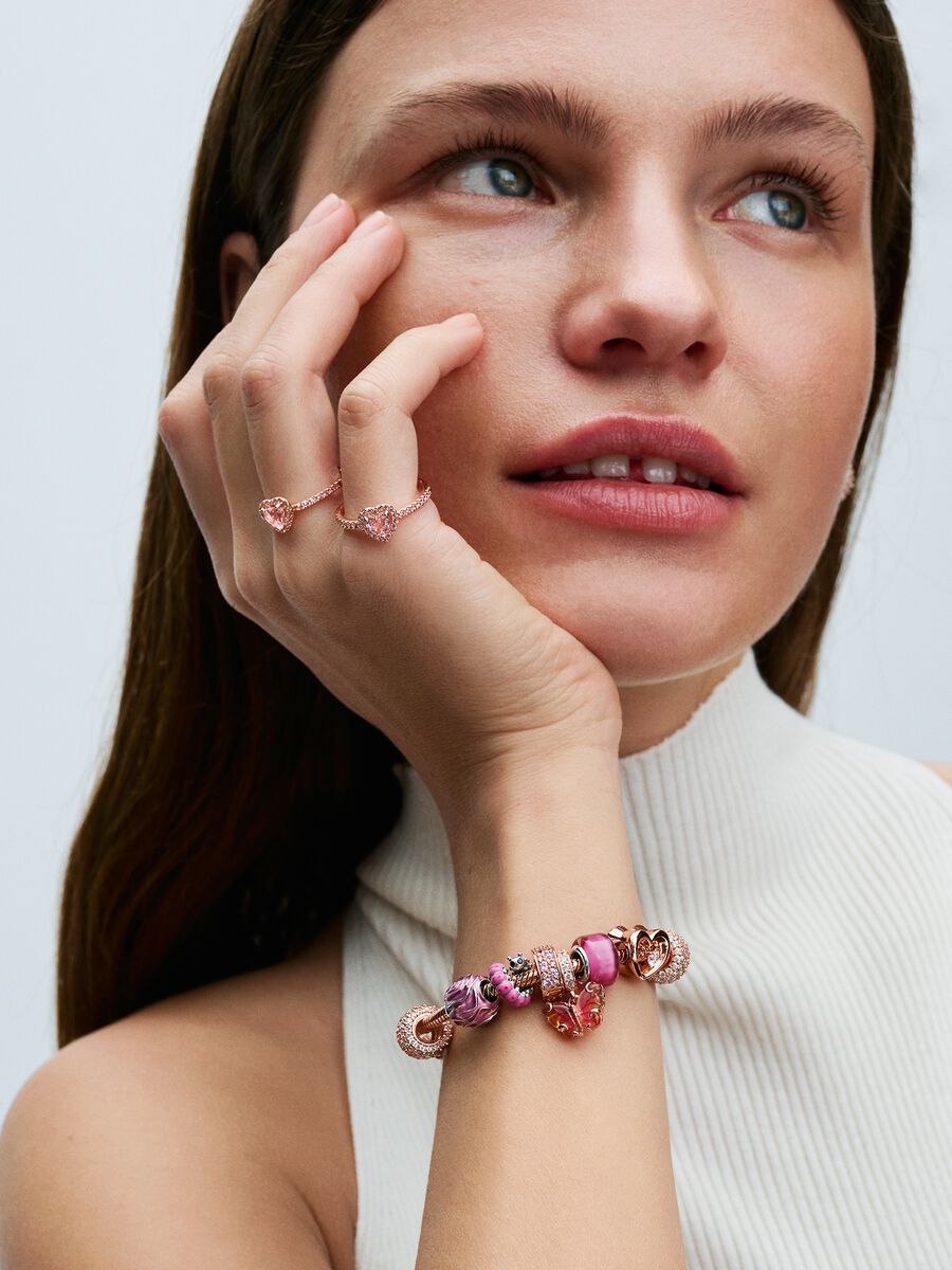Embrace transformation with the Pink & Yellow Murano Glass Butterfly Dangle Rose Gold Charm. Crafted with 14k rose gold plating, it features vibrant orange-to-pink gradient Murano glass wings and intricate swirl details. The cut-out design, microbead body, and pavé-set bail bring elegance and meaning to this symbol of new beginnings.