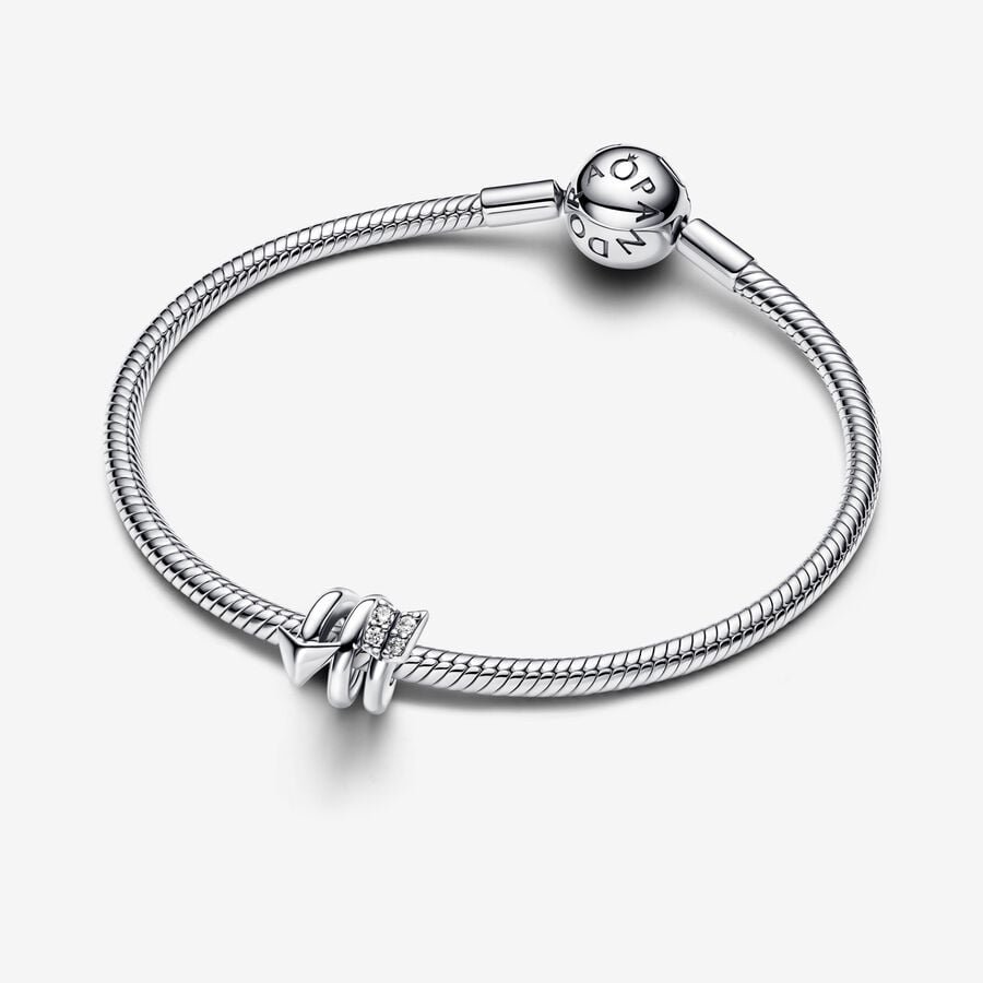Fall in love with this romantic arrow charm, crafted from sterling silver to capture the spirit of affection. Four shimmering cubic zirconia stones are bead-set along the elegant bow, adding a touch of sparkle to its graceful, twisting design. It makes a unique and eye-catching addition to any look. Carry the feeling of Valentine's Day with you all year round, or surprise someone special with this heartfelt gift.